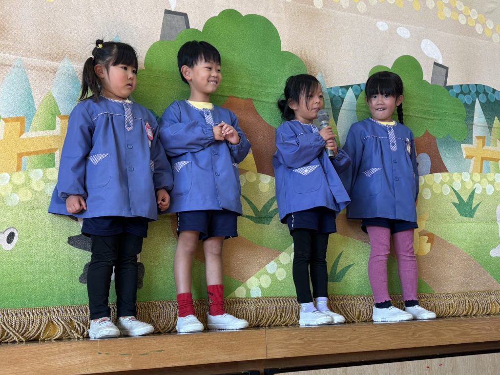 終業式では、2学期頑張ったことを年中さんに発表してもらいました。縄跳びや鉄棒、運動会や生活発表会などそれぞれに思い出があるようです。園長先生と、いい気持ちで新年を迎えられるよう冬の約束をして2学期を締めくくりました。 -