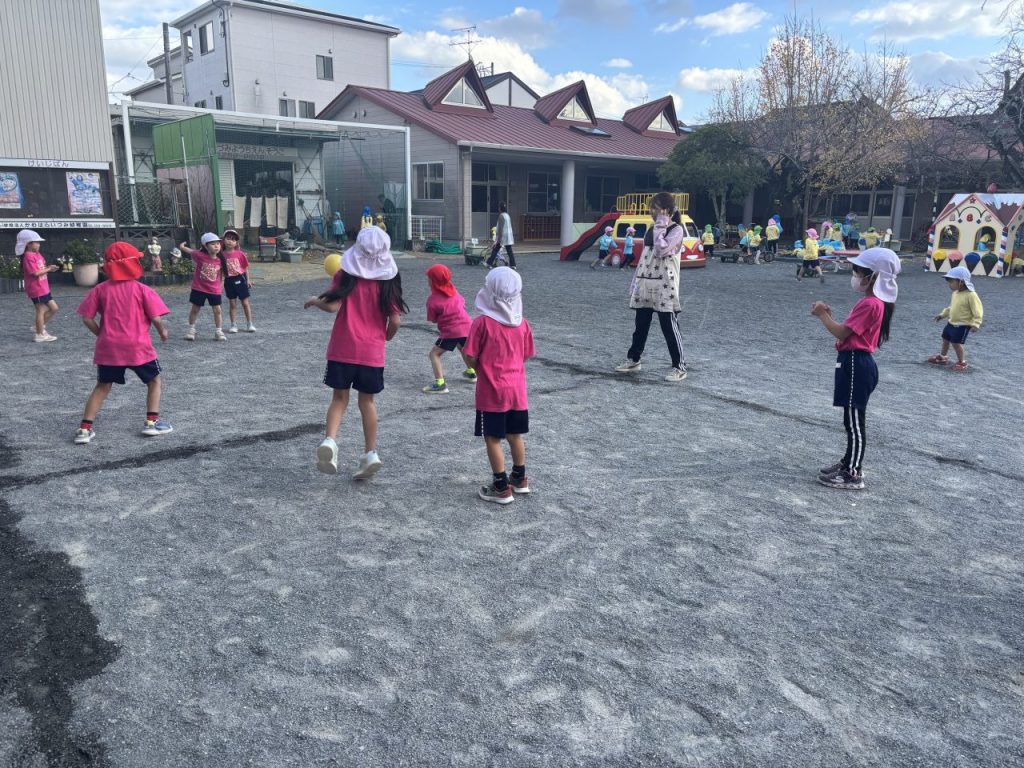 12月になるとぐーーーんと気温が下がり、園庭のイチョウの木から葉がたくさん散り、少し寂しさを感じます。みんなはそれをおままごとの材料として使っています。ドッチボール、鬼ごっこ、サッカーなど好きなことをして元気に遊びました。 -