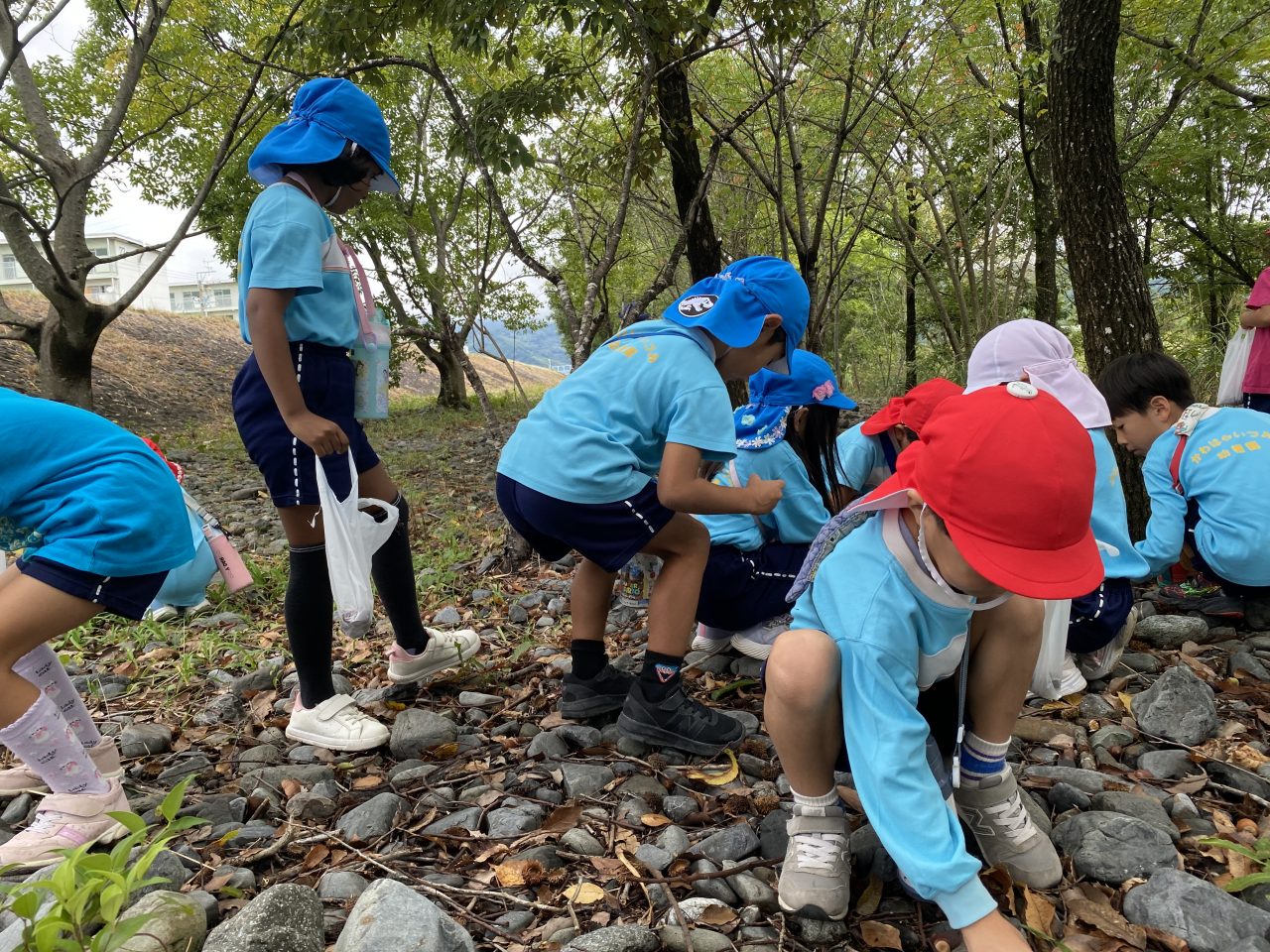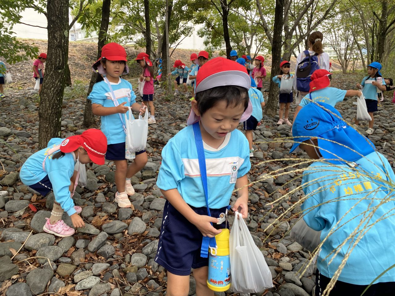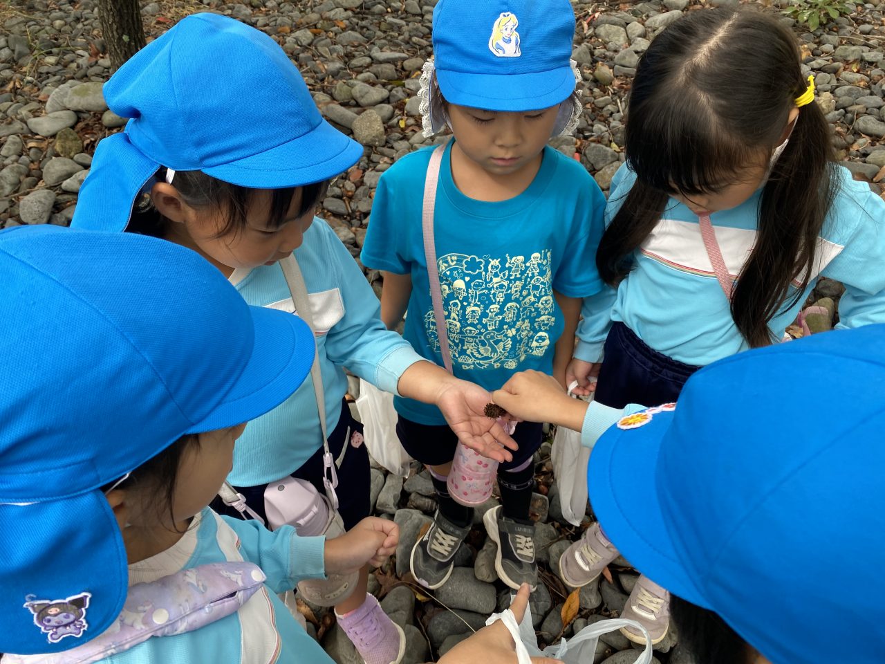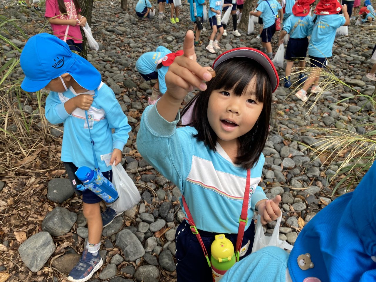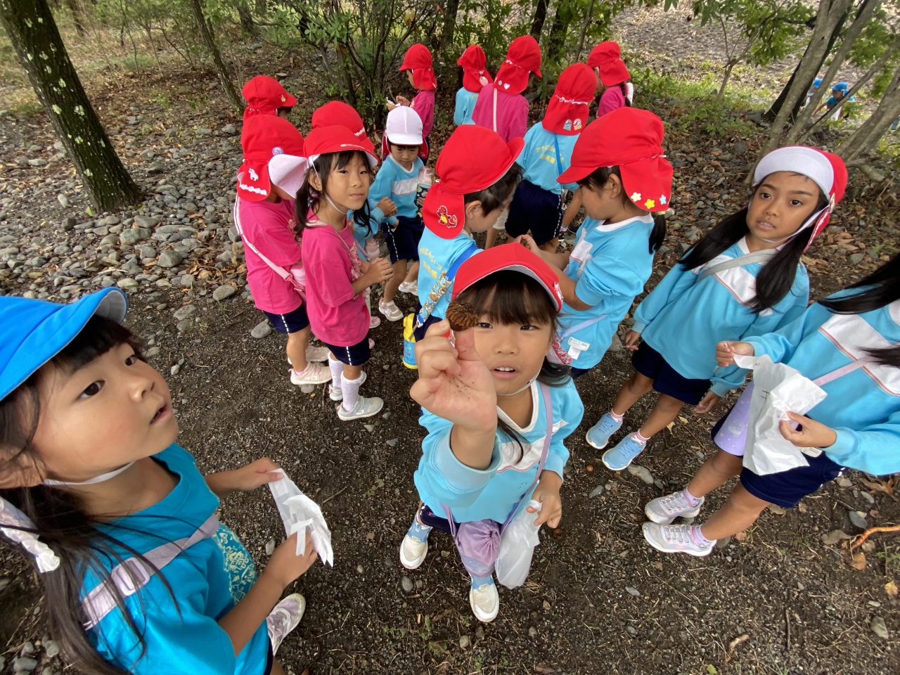 年長は安倍川上流にある(秘密の場所)へ探検に行きました。今にもトトロが出てきそうな森のトンネルをくぐると…そこにはクヌギの実がたくさん落ちています。大きなどんぐりだーとみんな大喜び、袋にたくさん詰め込みお土産にしました。 運動会がんばるぞ 津波がきたらどうする