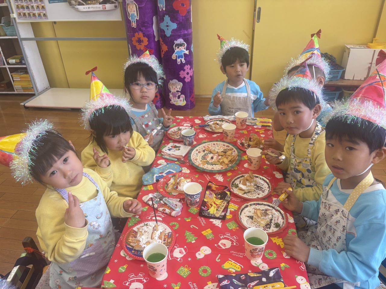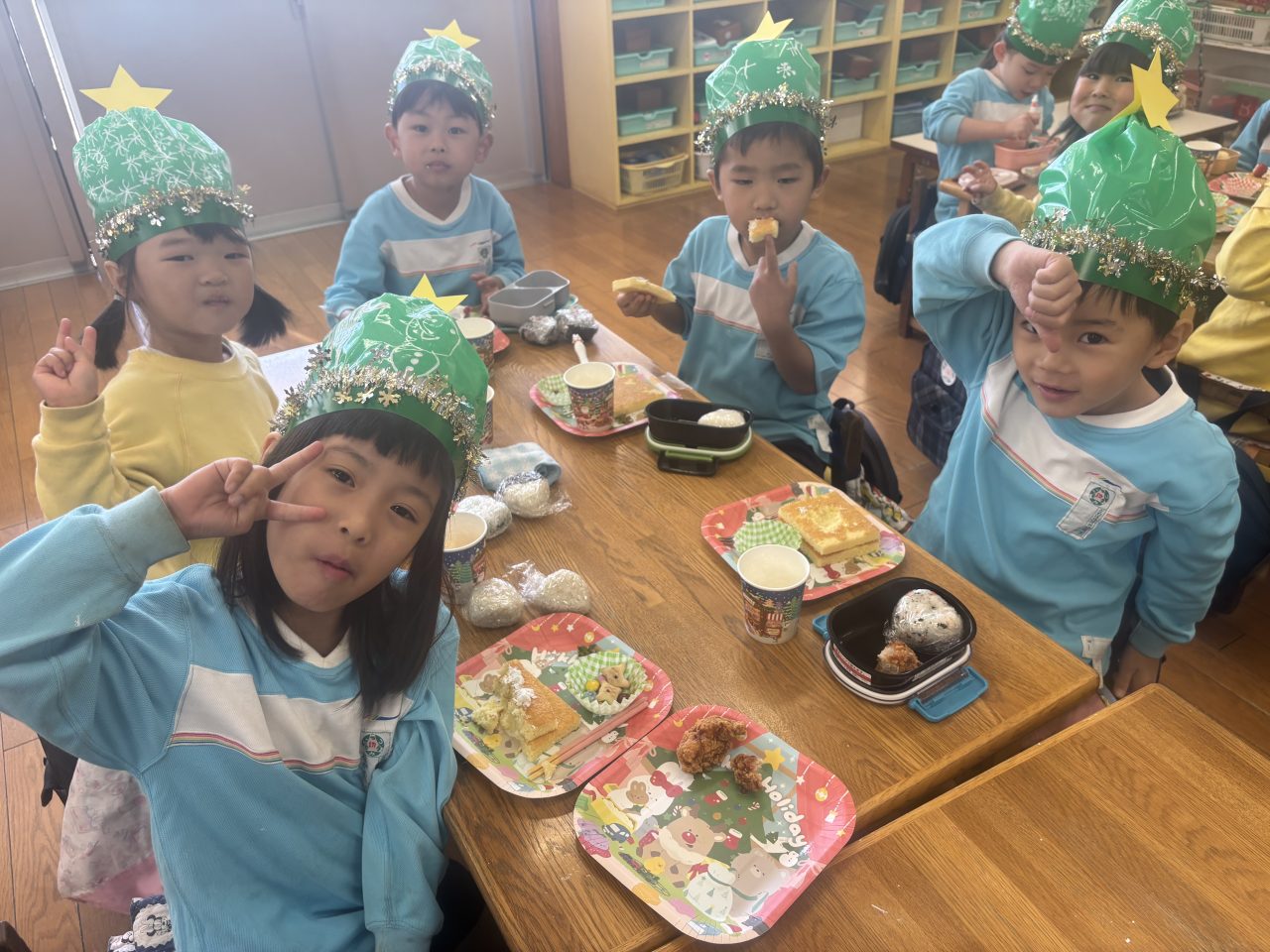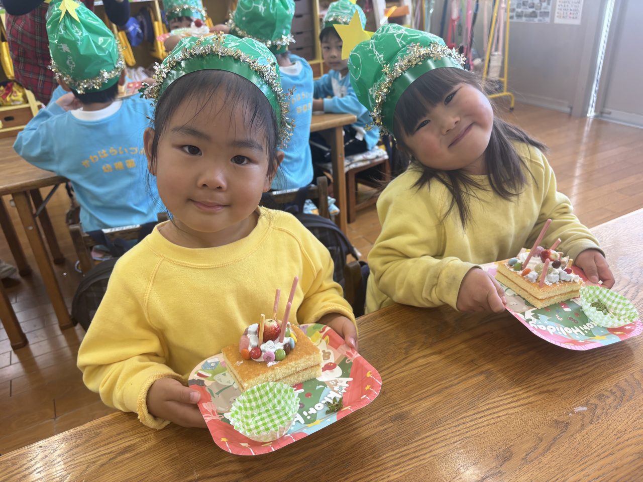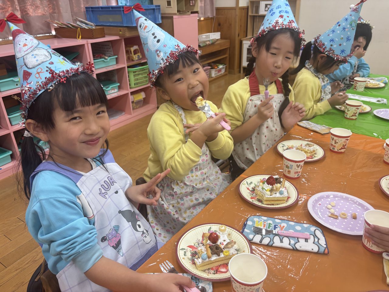 メリークリスマス!今日は特別にシュワシュワ炭酸で乾杯です。ケーキスポンジに生クリームを絞って、そこにたくさんのお菓子を並べると、世界にひとつのオリジナルケーキが完成です。甘いものでお腹がいっぱいになって幸せ…