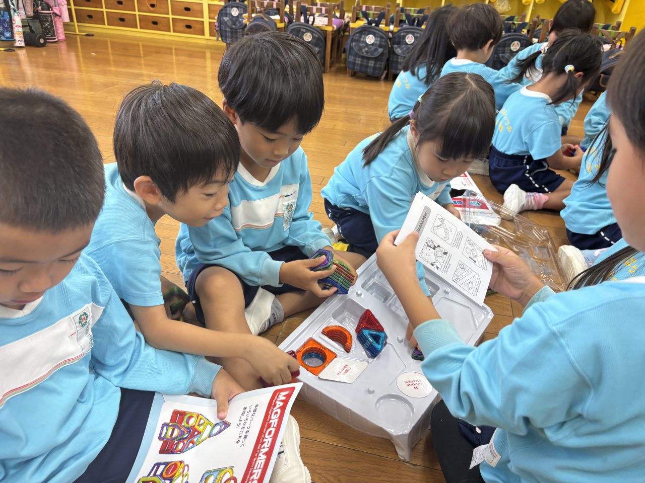 世界的に有名なボーネルンドのあそび道具が、段ボールで何箱も幼稚園に届きました!箱を開封すると、さっそくブロックや赤ちゃん人形に夢中になる子どもたち…これらのあそび道具はPTAさんからいただいた物です。中心になって計画してくれたPTA三役さん、ありがとうございました。