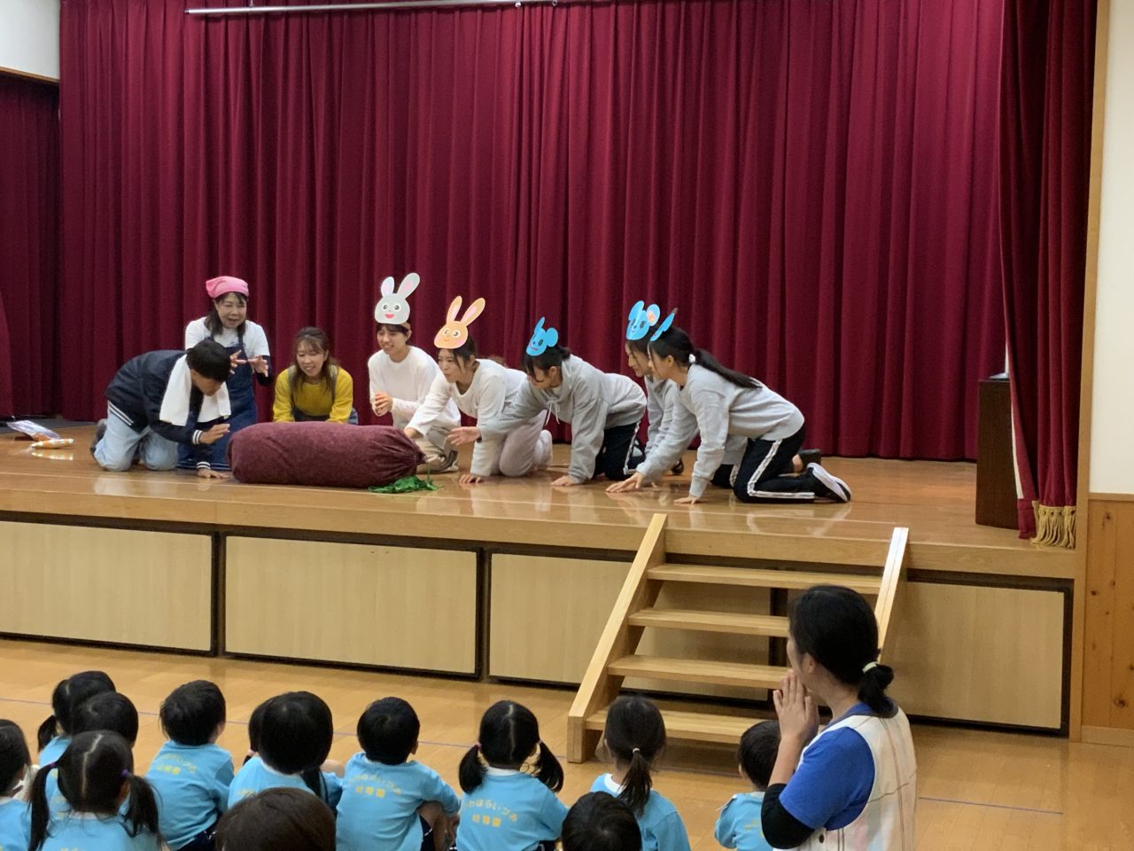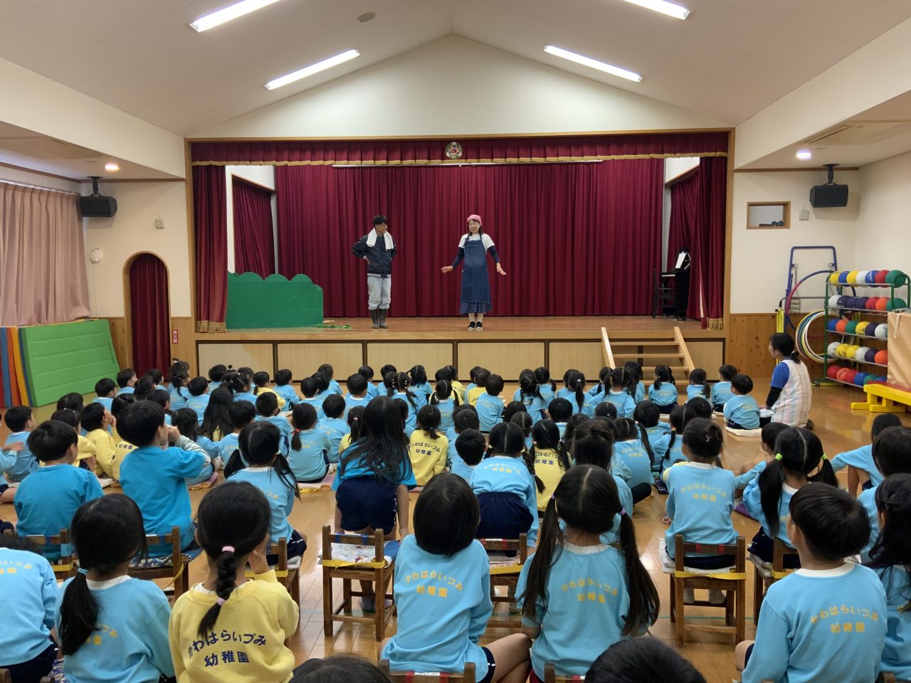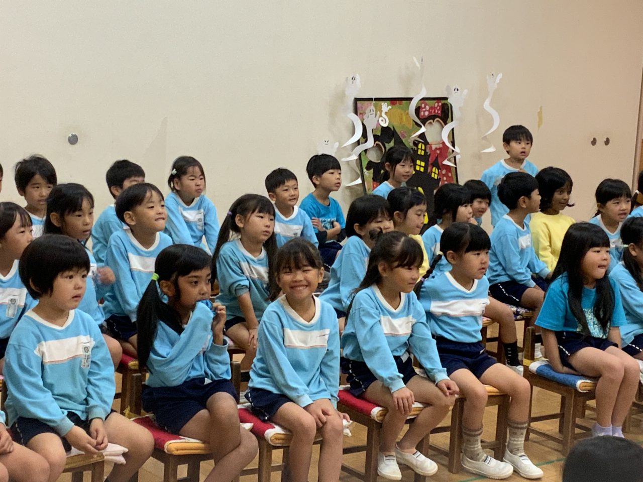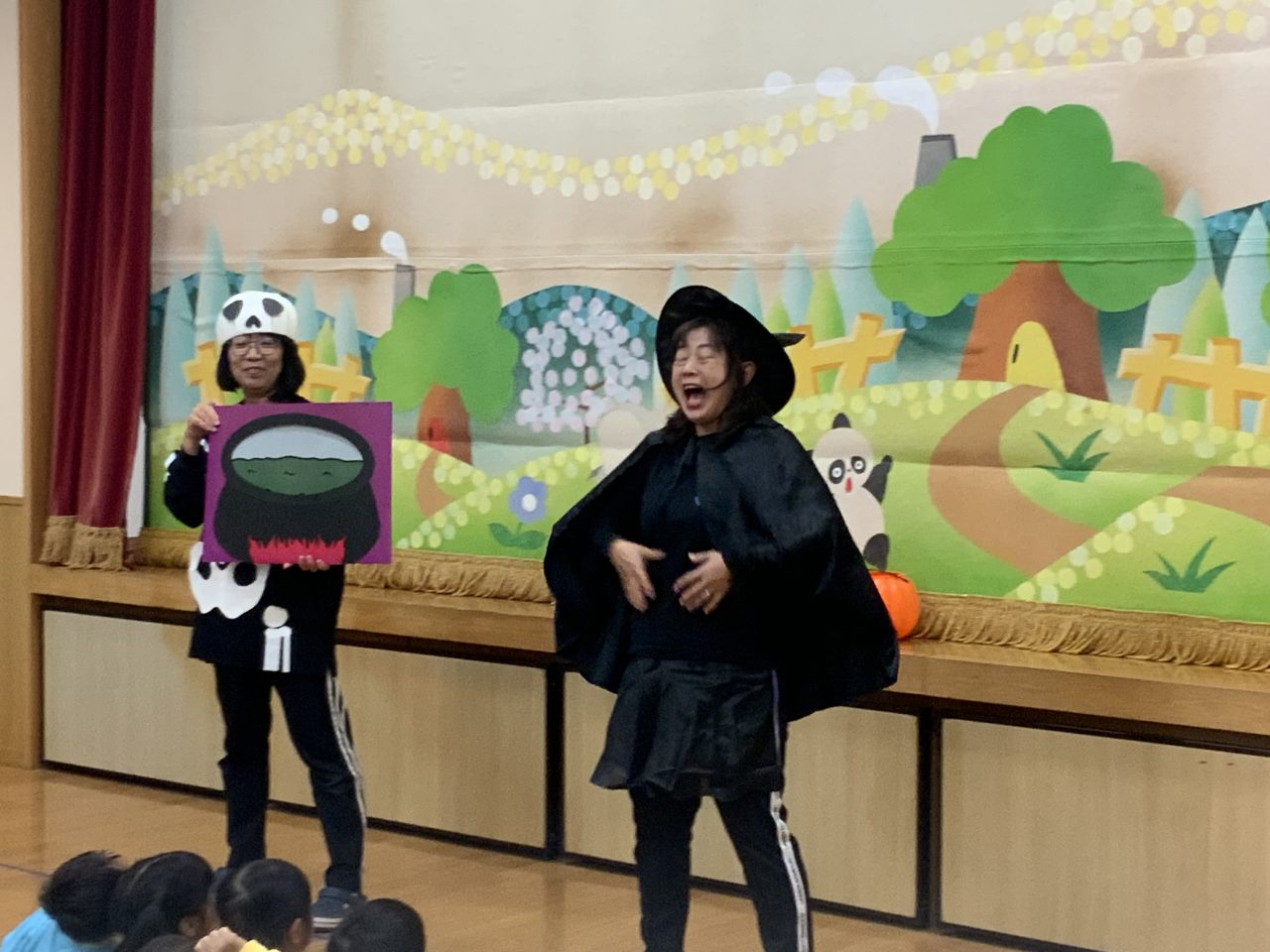 お楽しみ会では先生たちの面白い劇を楽しむ前に、ドレミキッズのお友達による楽器の演奏を聴きました。人前で披露するのは緊張するけれど、コンサートを控えたキッズのみんなにはいい練習となりました。魔女とガイコツも迫力がありますね… Not so scary Halloween party