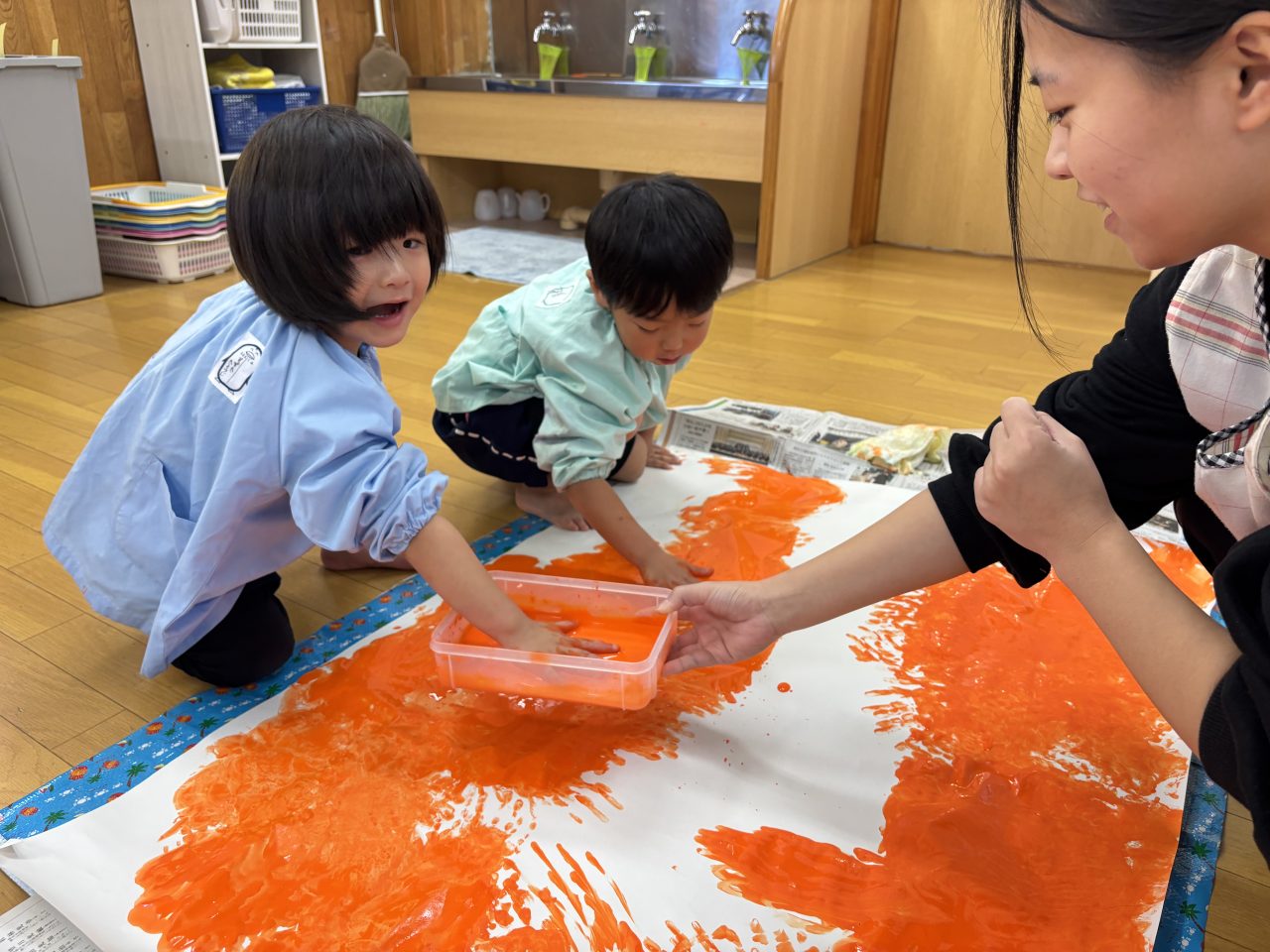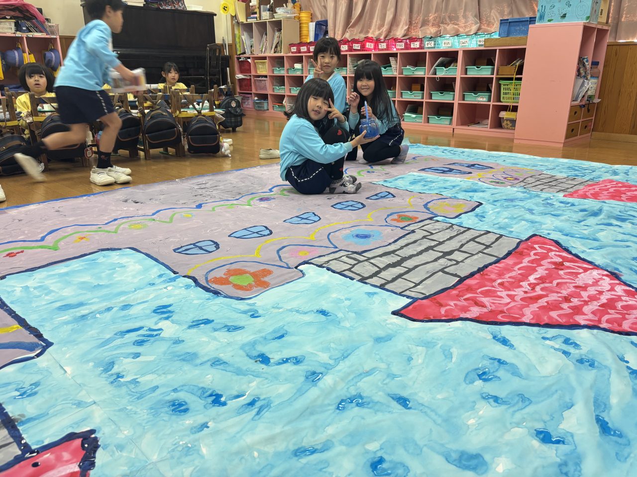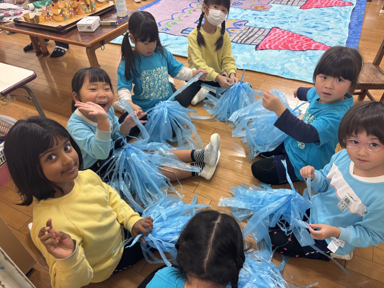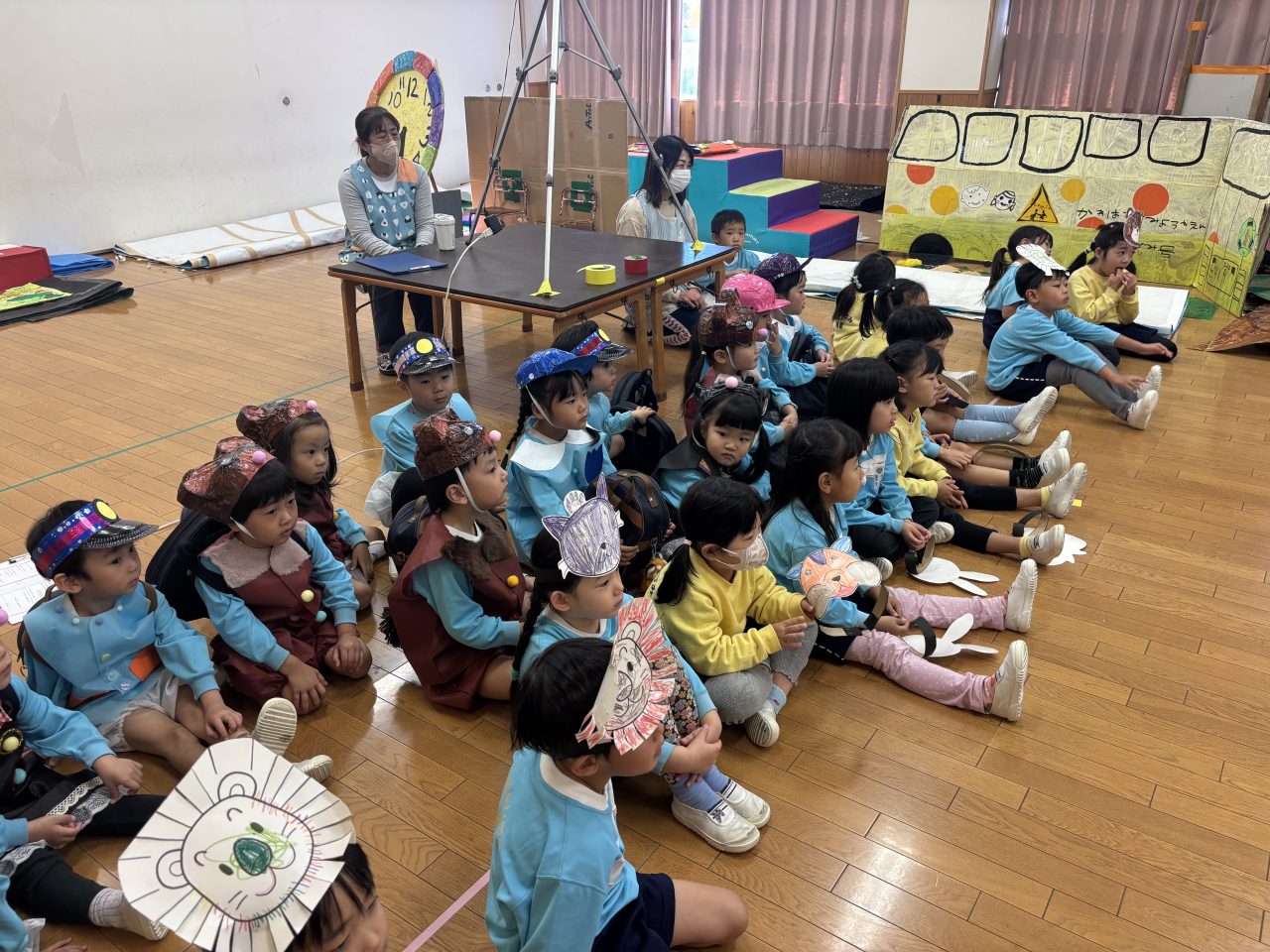 生活発表会で使用する大道具と小道具作りが、各クラスで盛んになってきました。大きな模造紙を重ねて、劇に登場するお城や森を描いたり、登場人物の持ち物を作ったり…イメージを共有させながら雰囲気作りをしていきます。 楽器演奏 ビデオ撮り