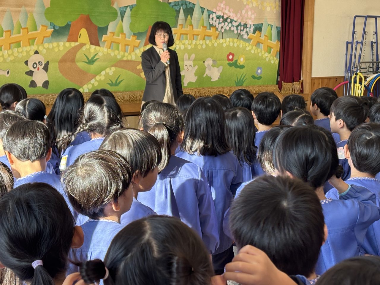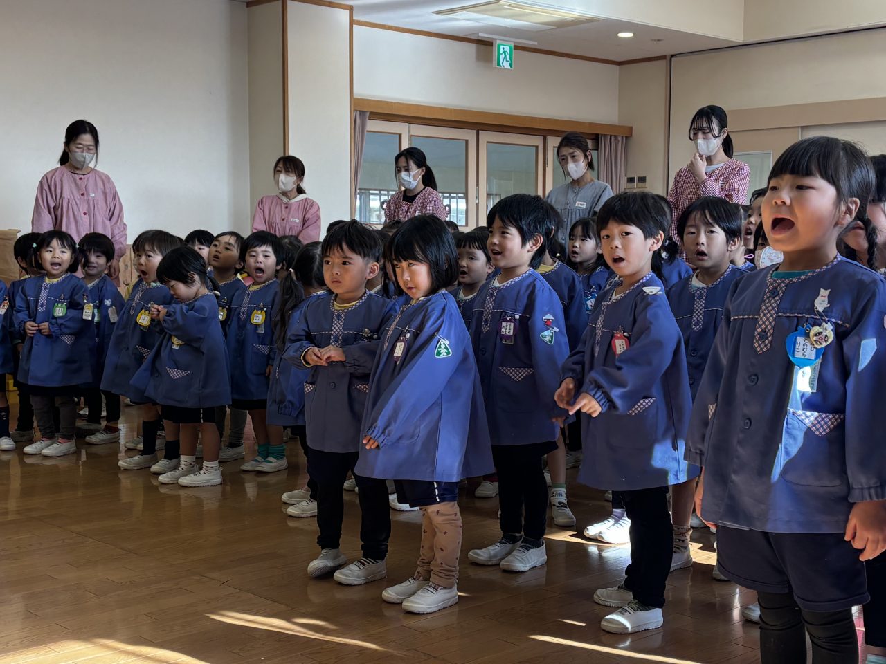 終業式では、2学期頑張ったことを年中さんに発表してもらいました。縄跳びや鉄棒、運動会や生活発表会などそれぞれに思い出があるようです。園長先生と、いい気持ちで新年を迎えられるよう冬の約束をして2学期を締めくくりました。