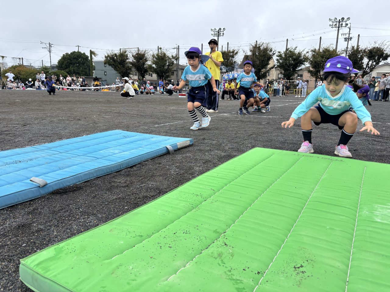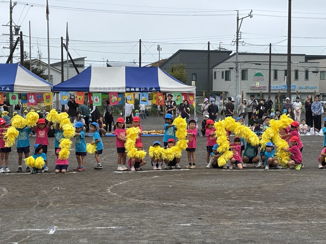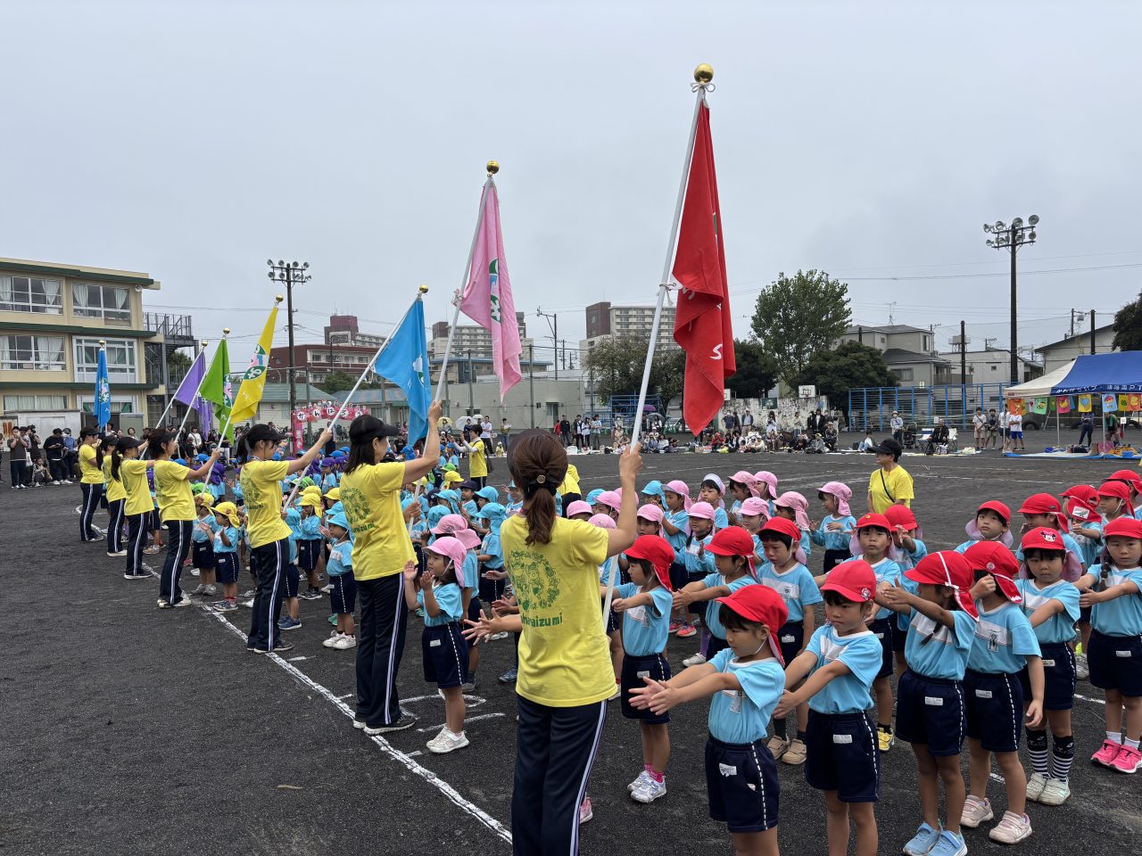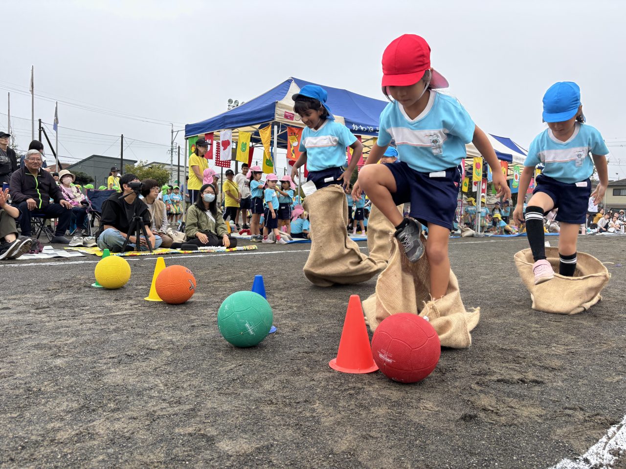 待ちに待った運動会…可愛い万国旗が子どもたちの頑張りを応援しています。徒競走では障害物を乗り越えてゴールを目指し、お遊戯では可愛い衣装と素敵な笑顔がとても印象的でした!締めくくりは年長リレー、どのチームも力合わせてがんばりました。 運動会の準備 クヌギ拾い
