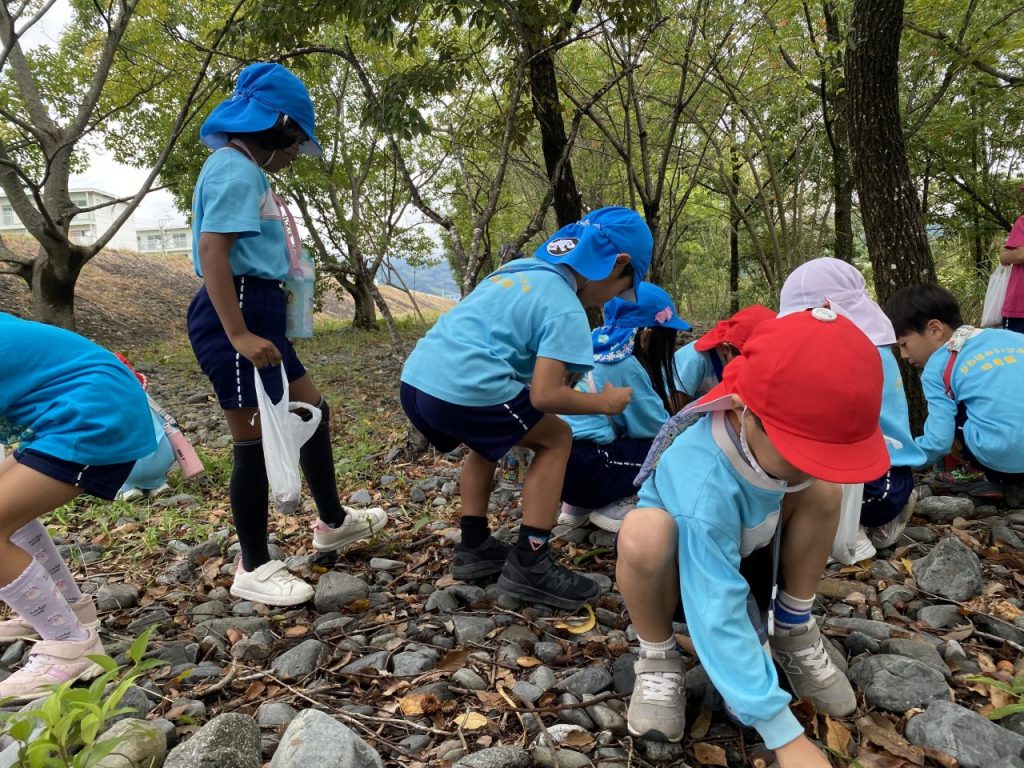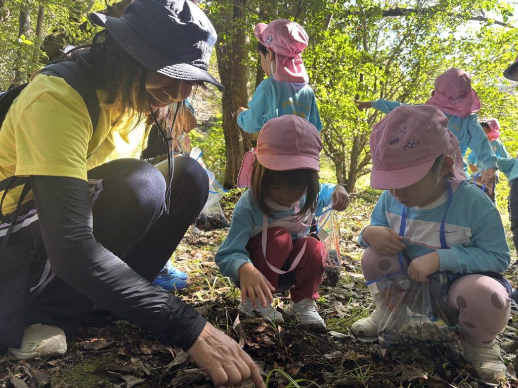 年長は安倍川上流にある(秘密の場所)へ探検に行きました。今にもトトロが出てきそうな森のトンネルをくぐると…そこにはクヌギの実がたくさん落ちています。大きなどんぐりだーとみんな大喜び、袋にたくさん詰め込みお土産にしました。 -