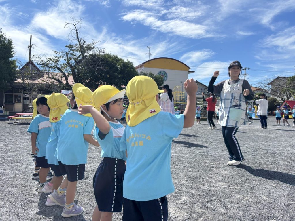 運動会で披露する(エビカニクス音頭)をみんなで練習しました。夏のお祭りや盆踊りでもやったのでみんな上手です!少しずつ風が冷たくなり、秋の季節を感じられるようになりました。運動会当日もいい気候だとうれしいです… -