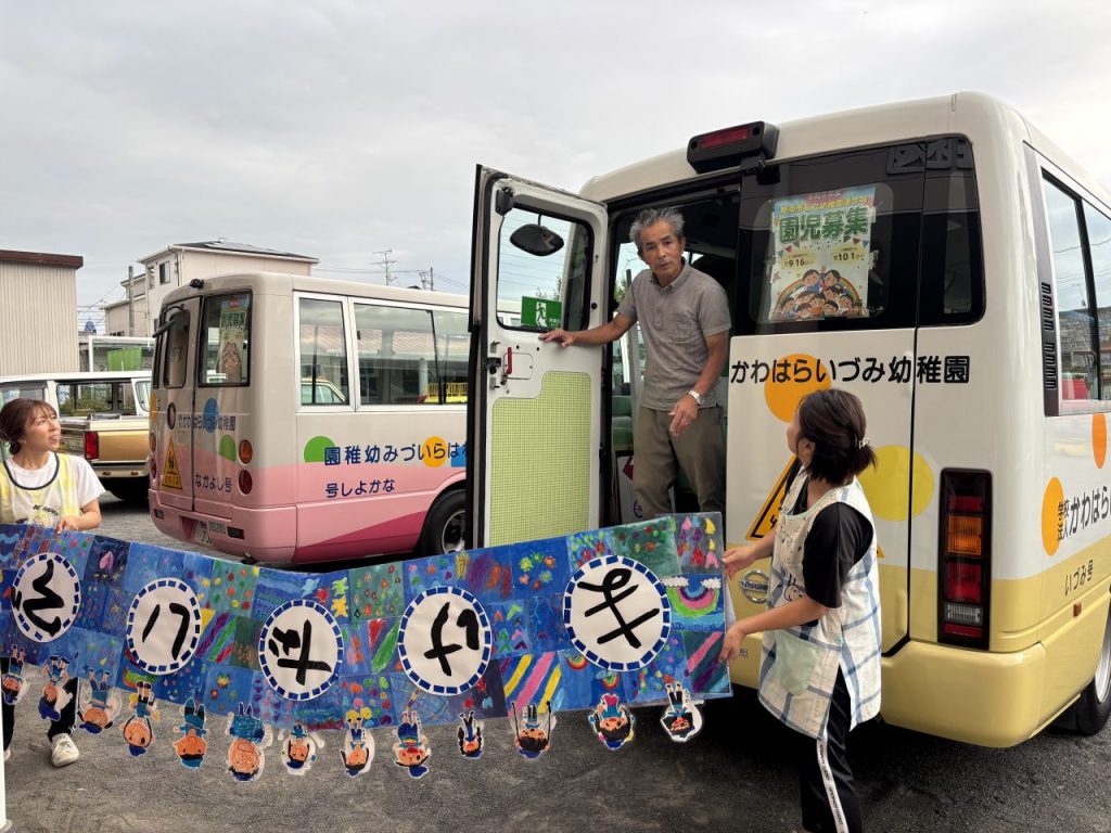 先生たちはたくさんの荷物を幼稚園バスやトラックに載せ、長田東小学校に向け出発準備を整えています。運動会に向け、子どもたちは練習を頑張ってきました。保護者の皆様に見てもらうことも楽しみにしています。練習の成果を出し切って頑張りましょう! -