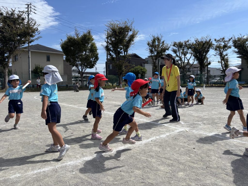 運動会がスムーズに進行するよう、近所の公園をお借りして運動会総練習を開催しました。本日は個人競技の練習です…先生や他学年の応援を受けながら、子どもたちはゴールを目指して一生懸命頑張りました。年長のリレー力強い走りでしたね。 -